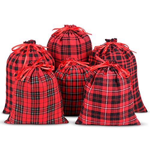 60% Off Discount Svnntaa 6 Pack Fabric Gift Bags Cotton Red and Black Plaid Drawstring Bag Stocking Storage Sack Present Xmas Gift Bags Party Favors Bags,Three 11.8x9.8 and Three 5.7x11.8